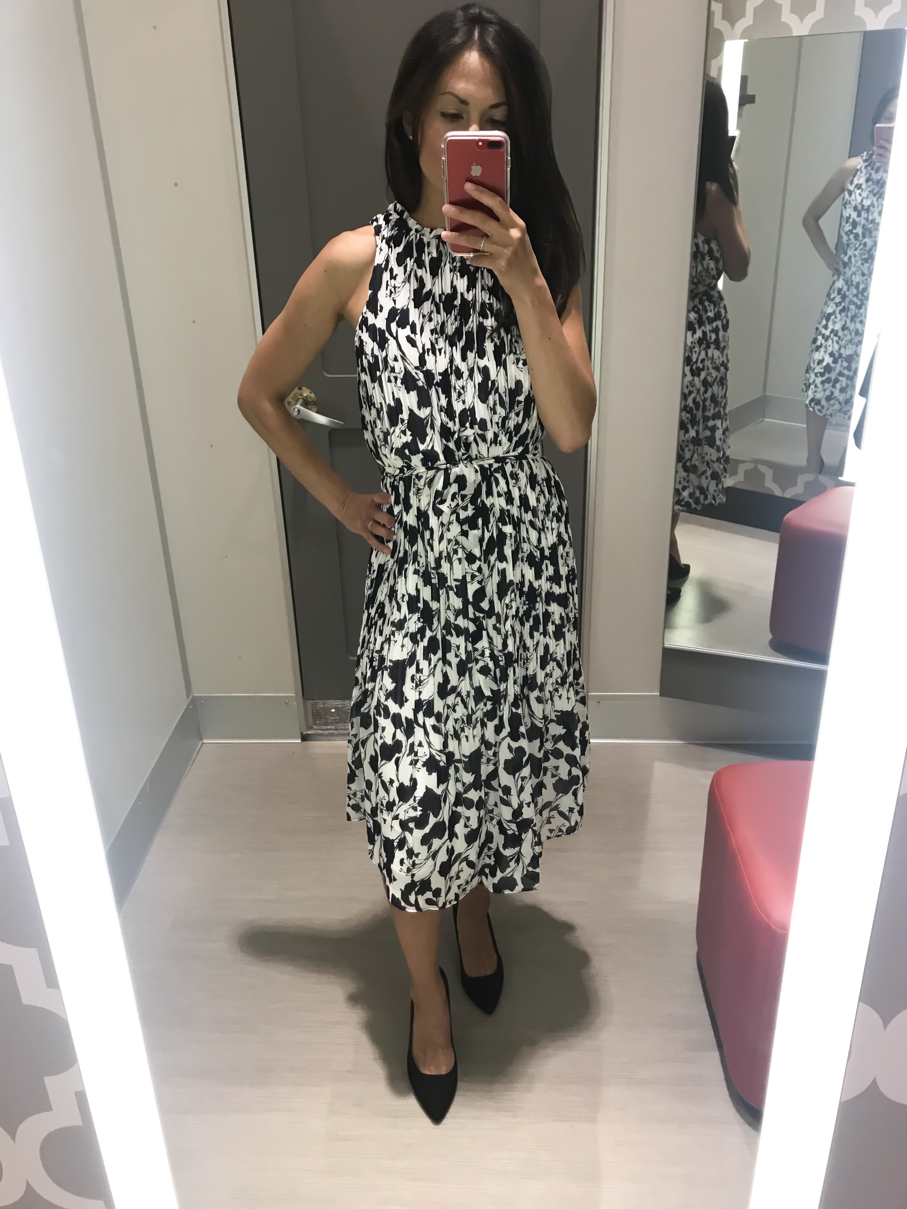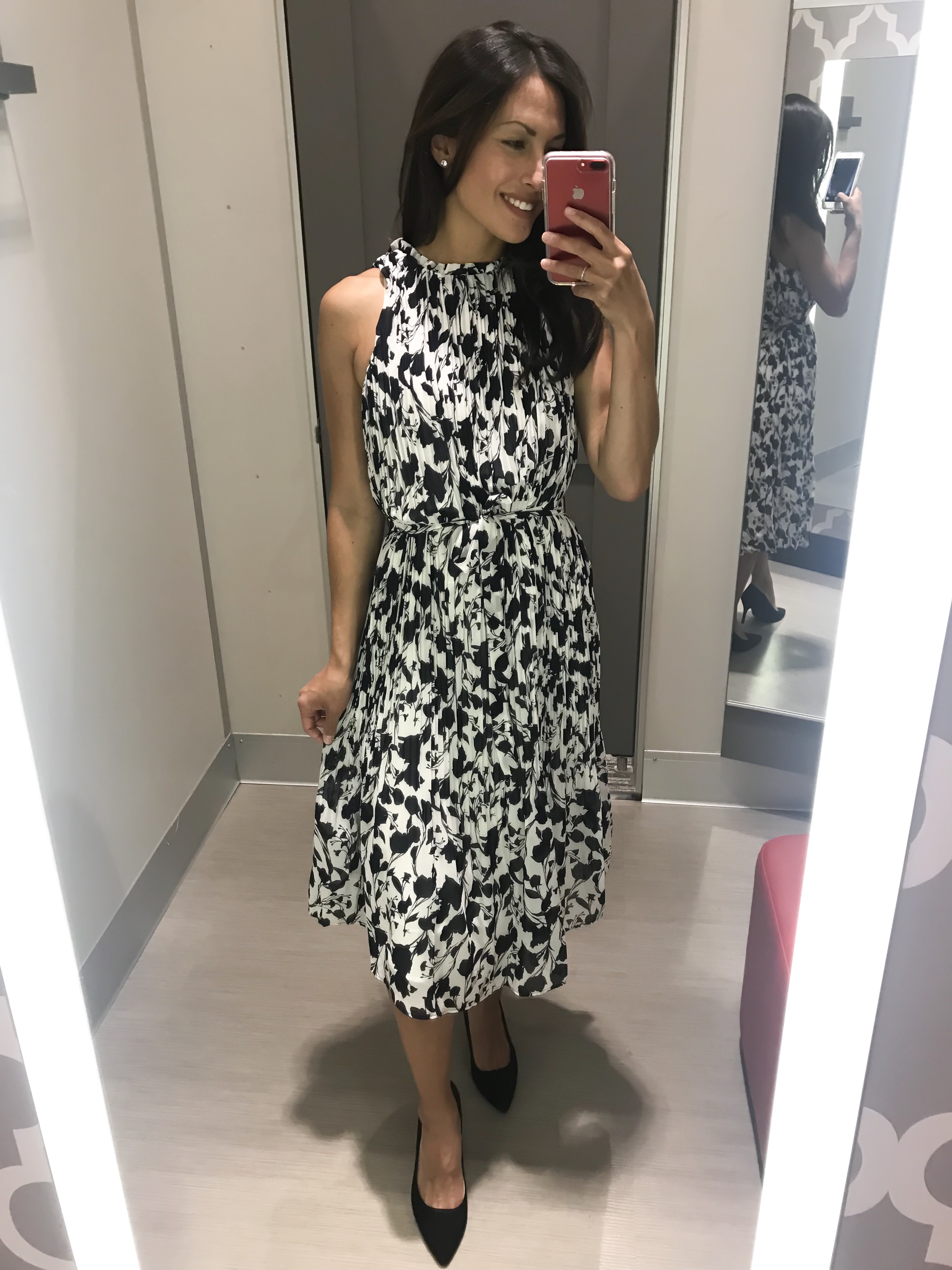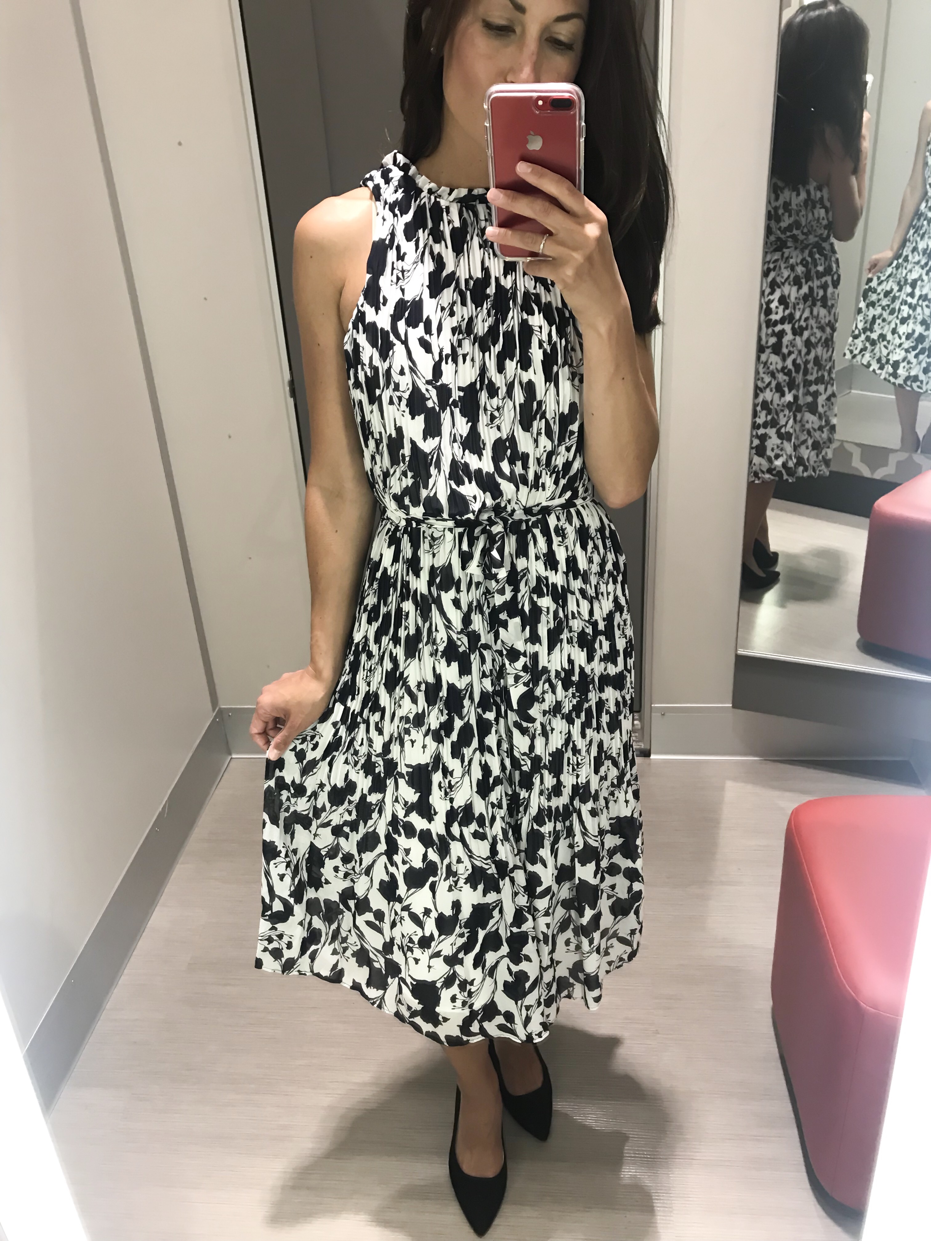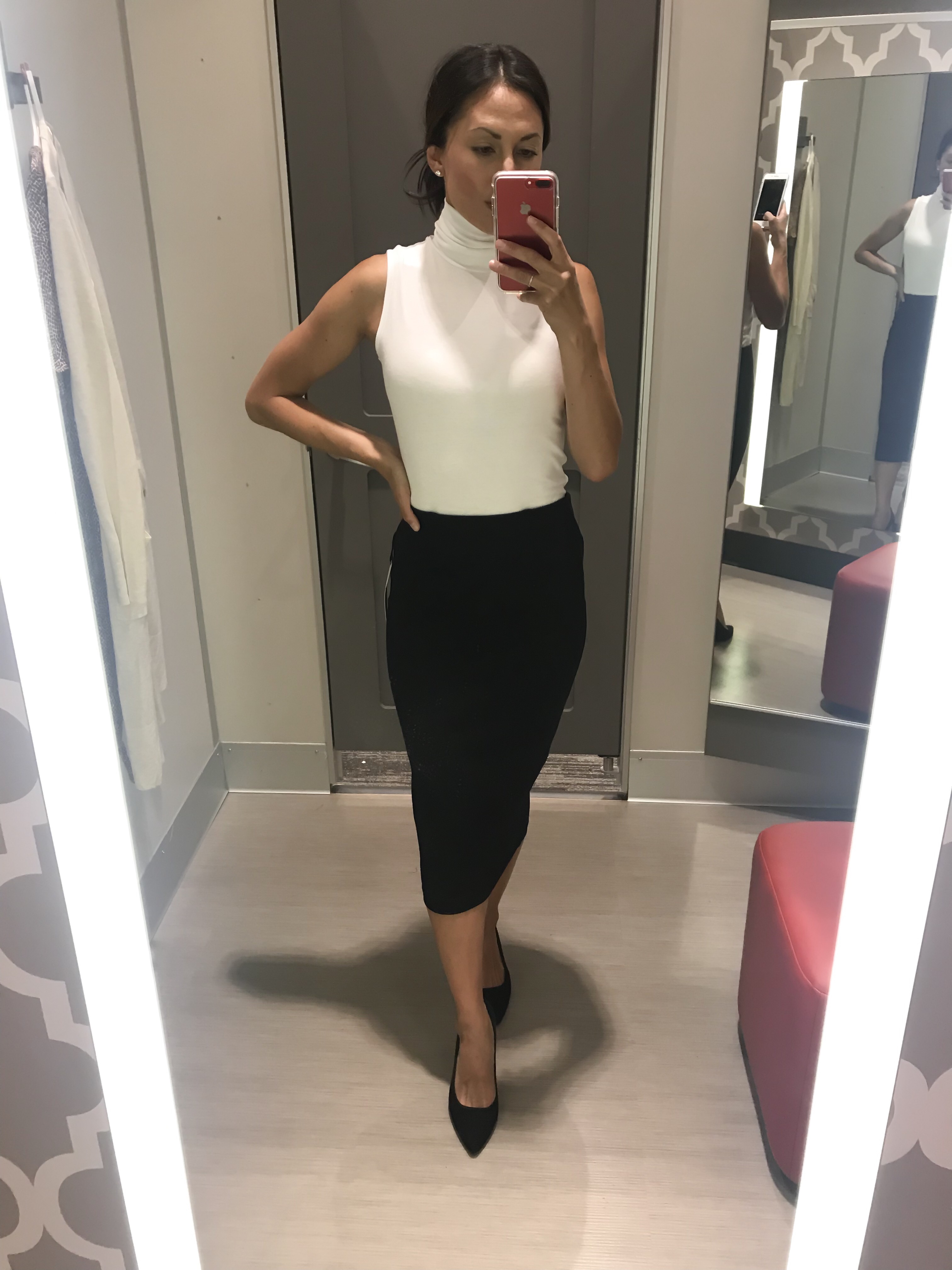 Here’s the same dress in black and once again, styled for the cooler temps as well. So clearly, I love this sleeveless turtleneck. Here it is again in white with the cutest pleated skirt that is only $28.Shop the look: