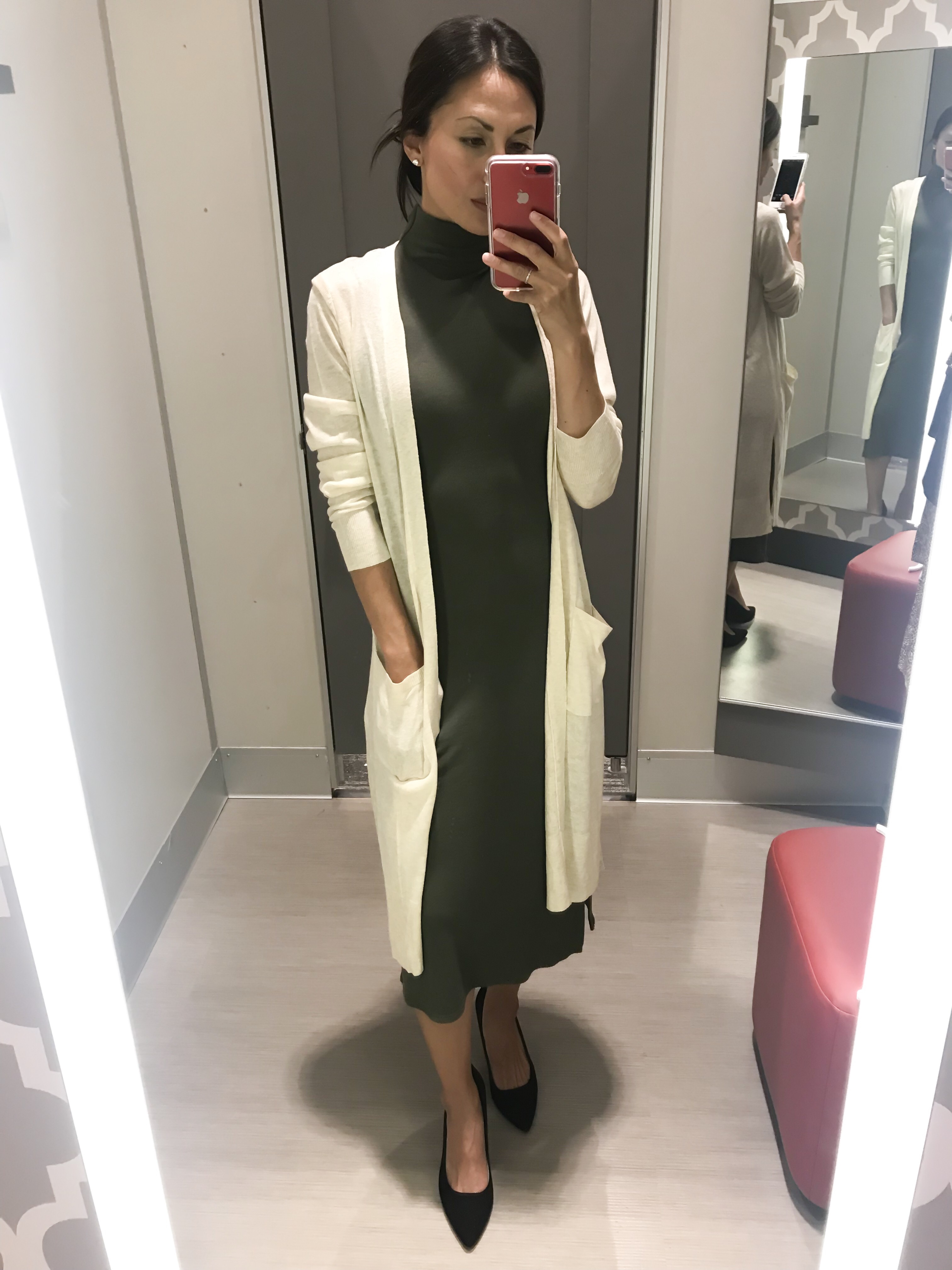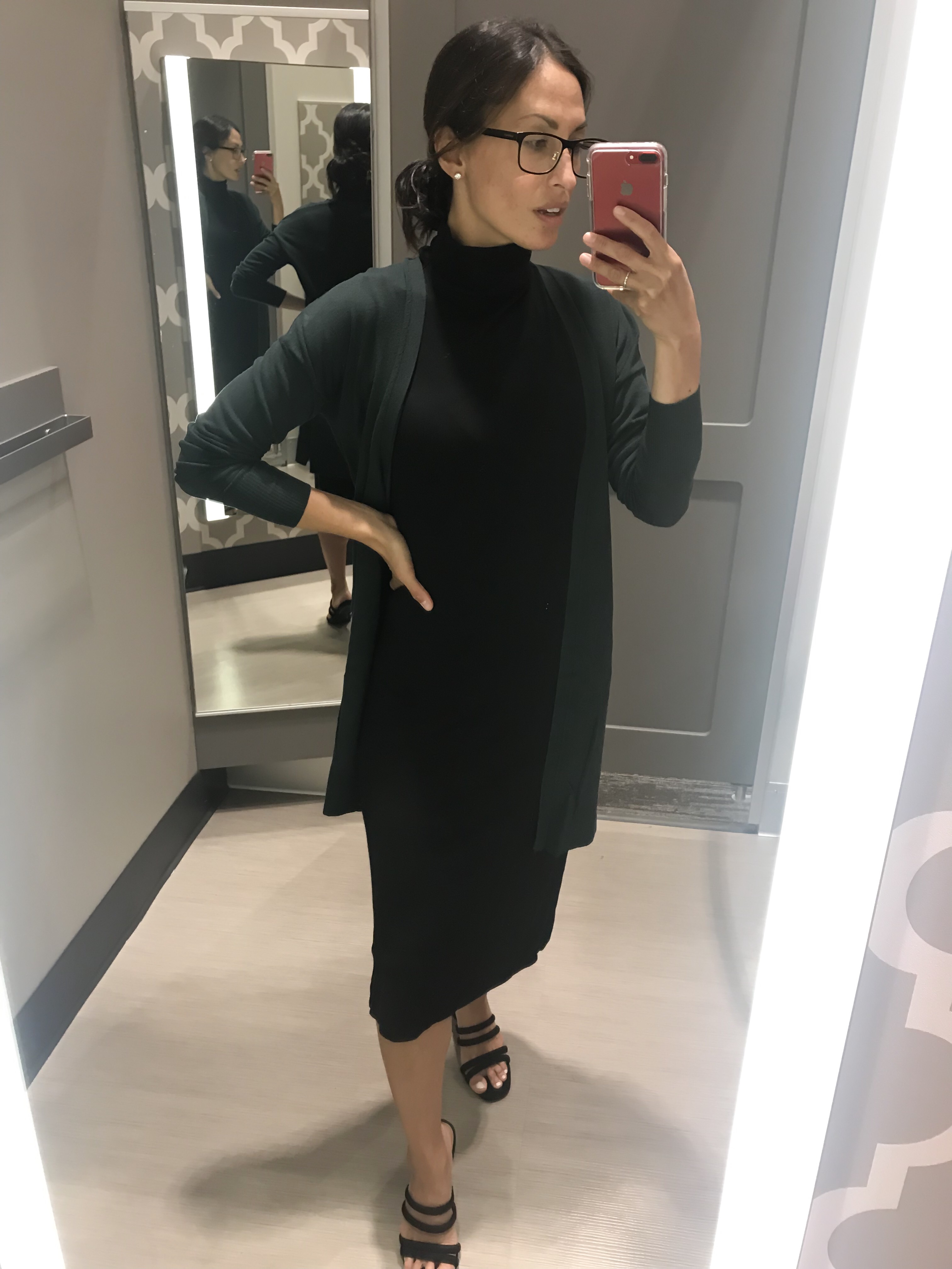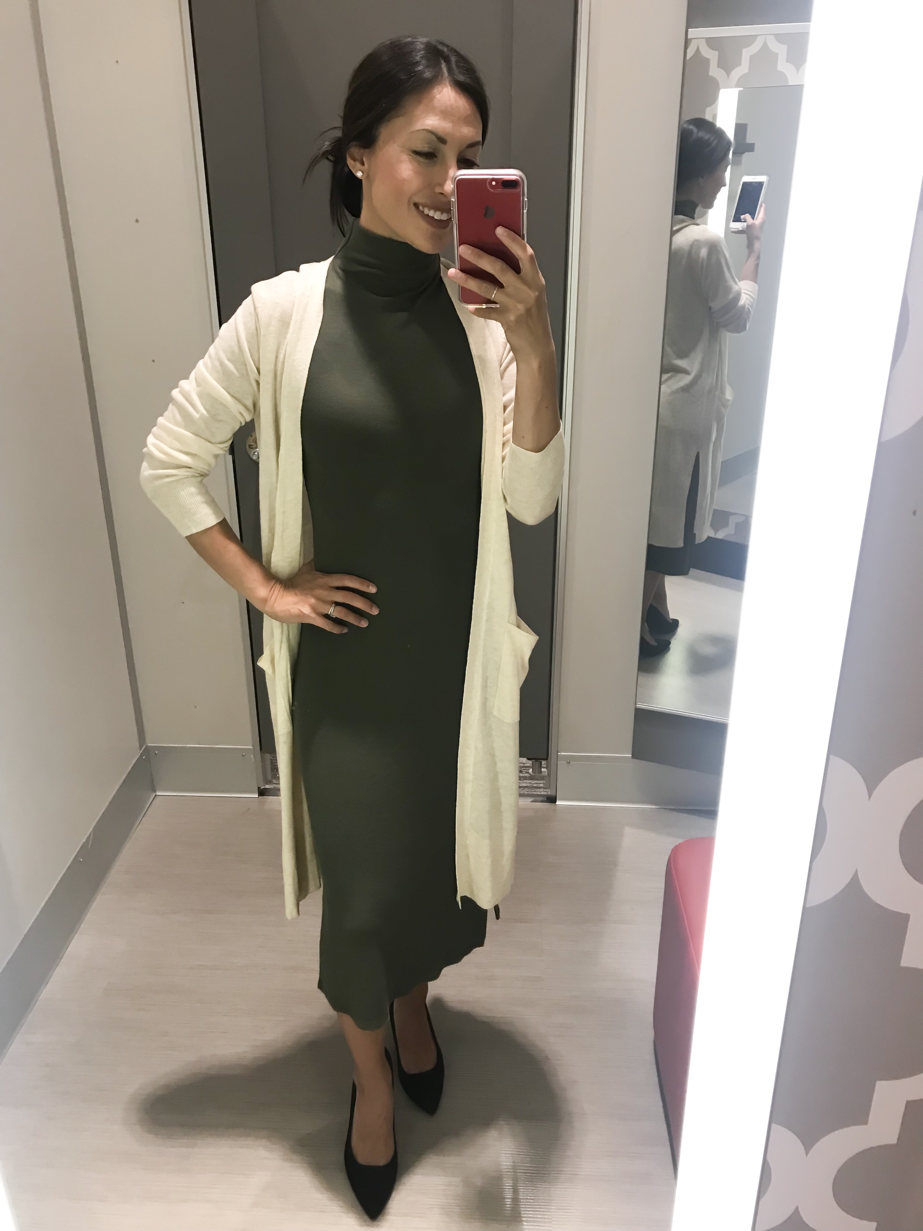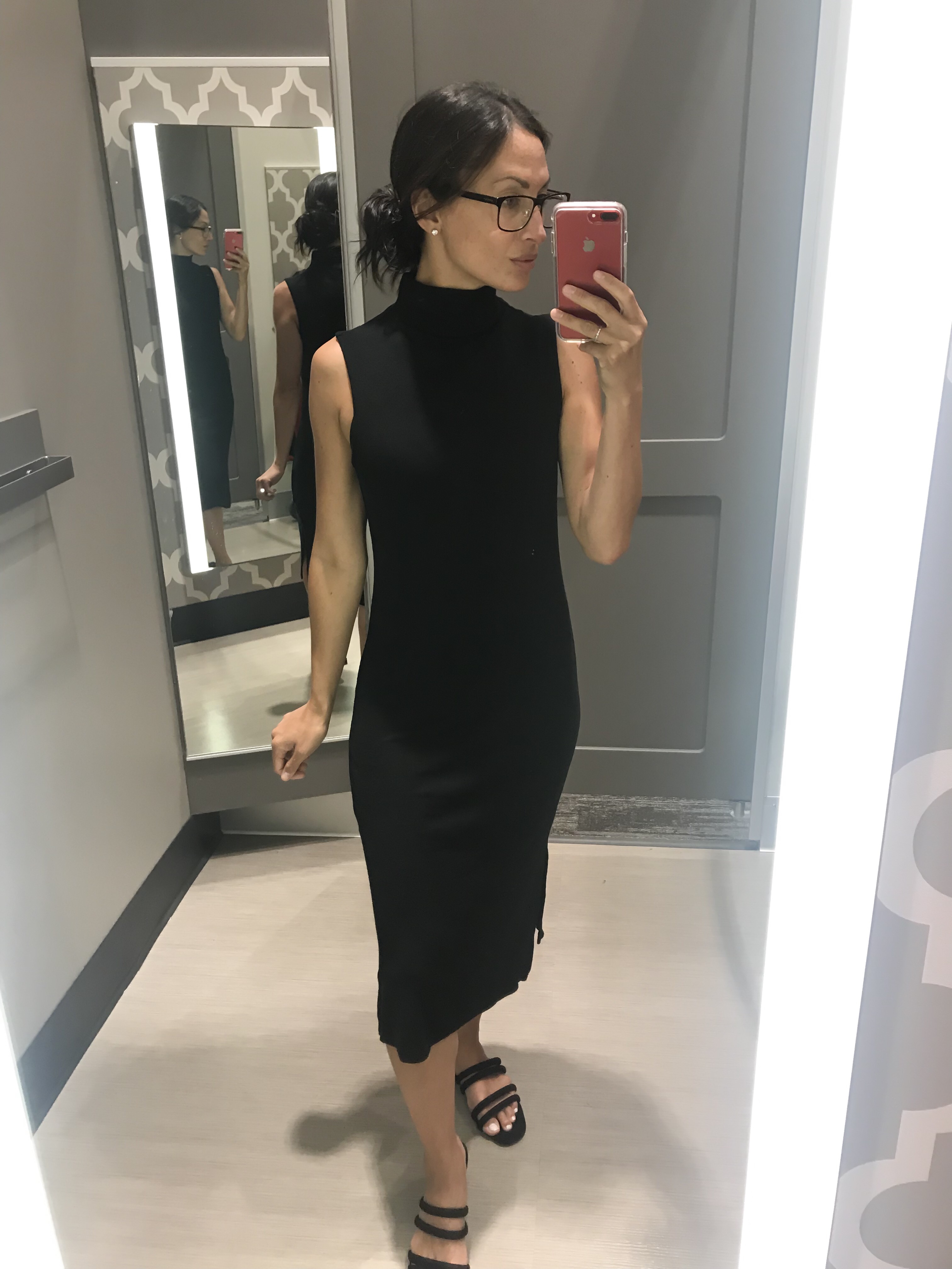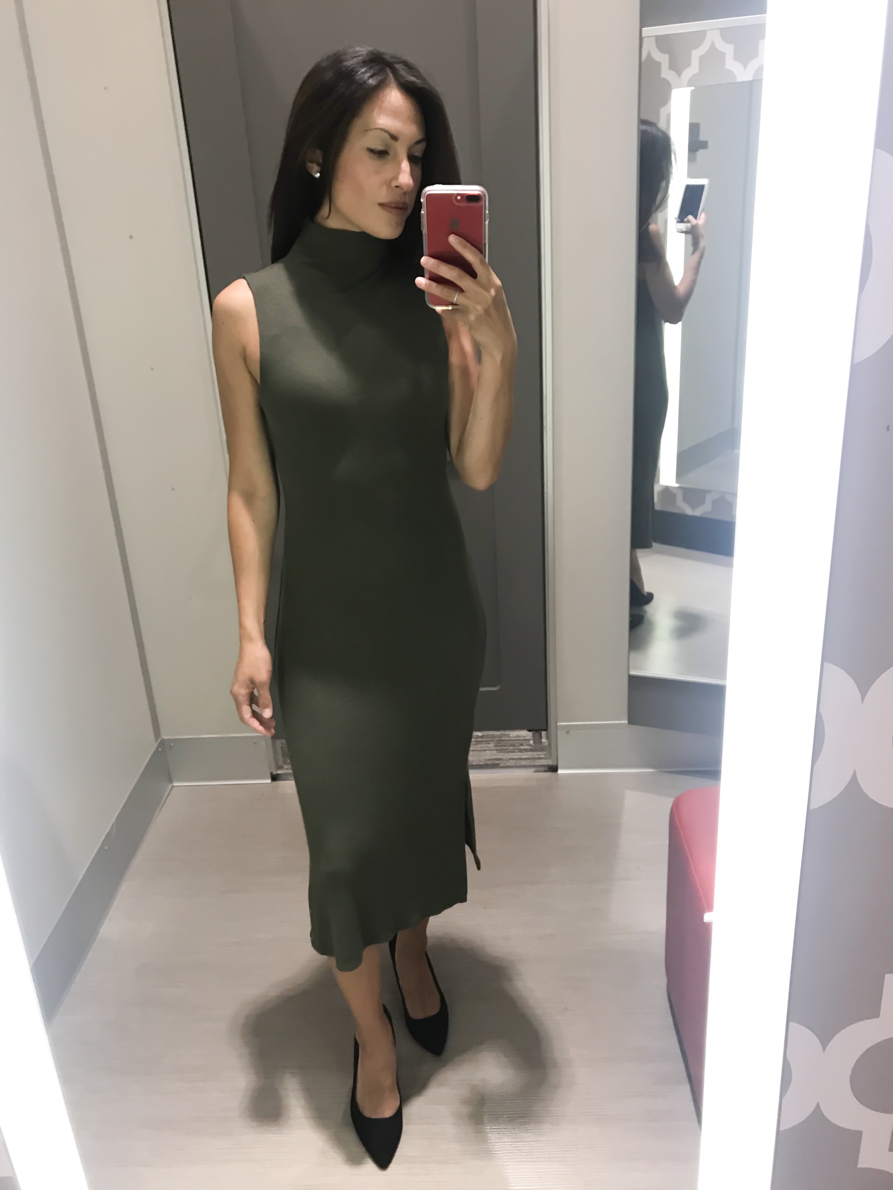 Sticking with the sleeveless turtleneck theme (sorry, it’s just classic!), this ribbed turtleneck dress is only $23 and comes in a variety of colors. You can easily style it with a cardigan to transition to the fall.Shop the look: