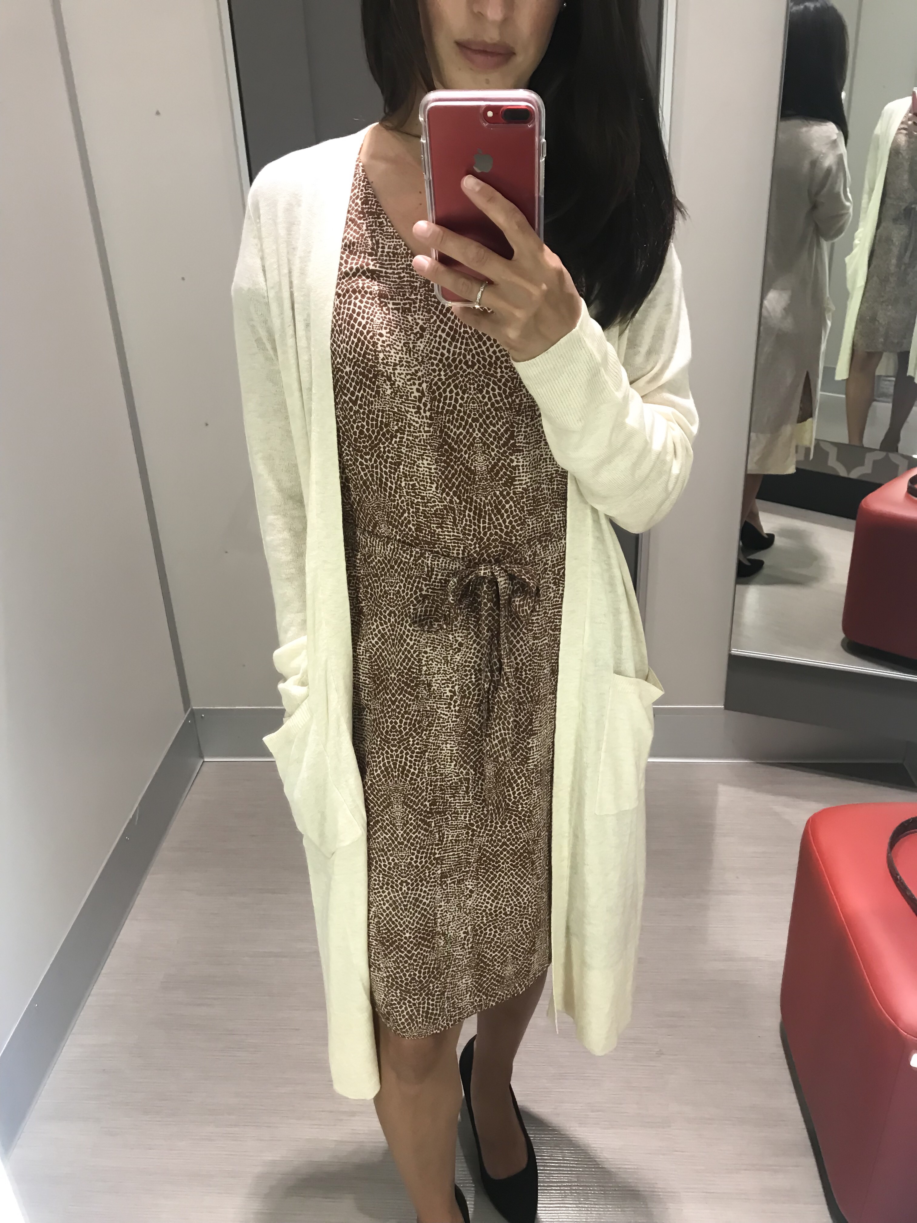 Here is another cute dress option that can also be worn with or without a cardigan. I love the brown snakeskin print. It is only $25. I actually have a button-down shirt with this same print (only $20).Shop the look: