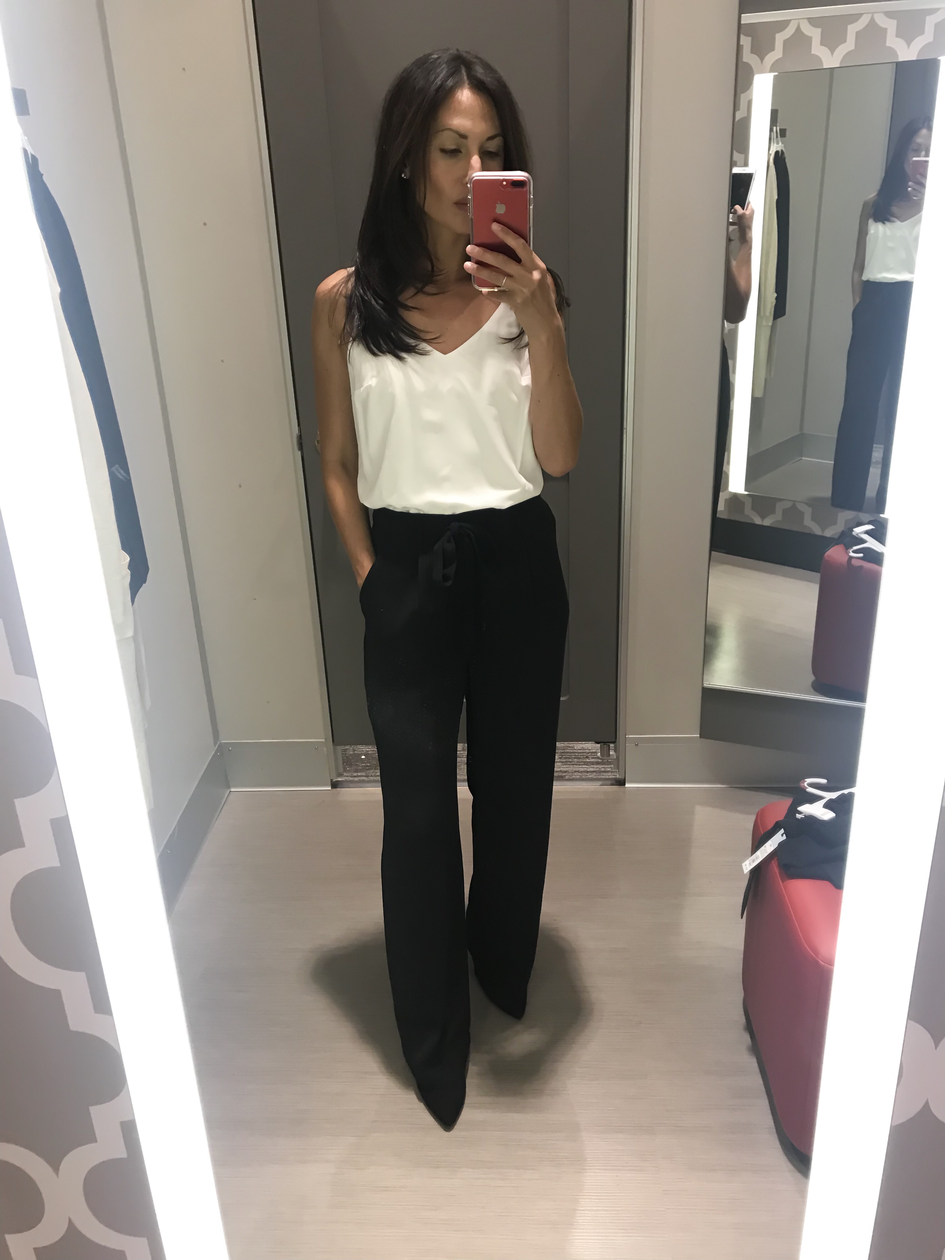 I am in love with a wide leg pant on you! That is the most flattering look I’ve seen! Your legs look a mile long especially with a high heel! You must wear a wide leg more than skinny! Also a flare leg jean might look stunning on you!