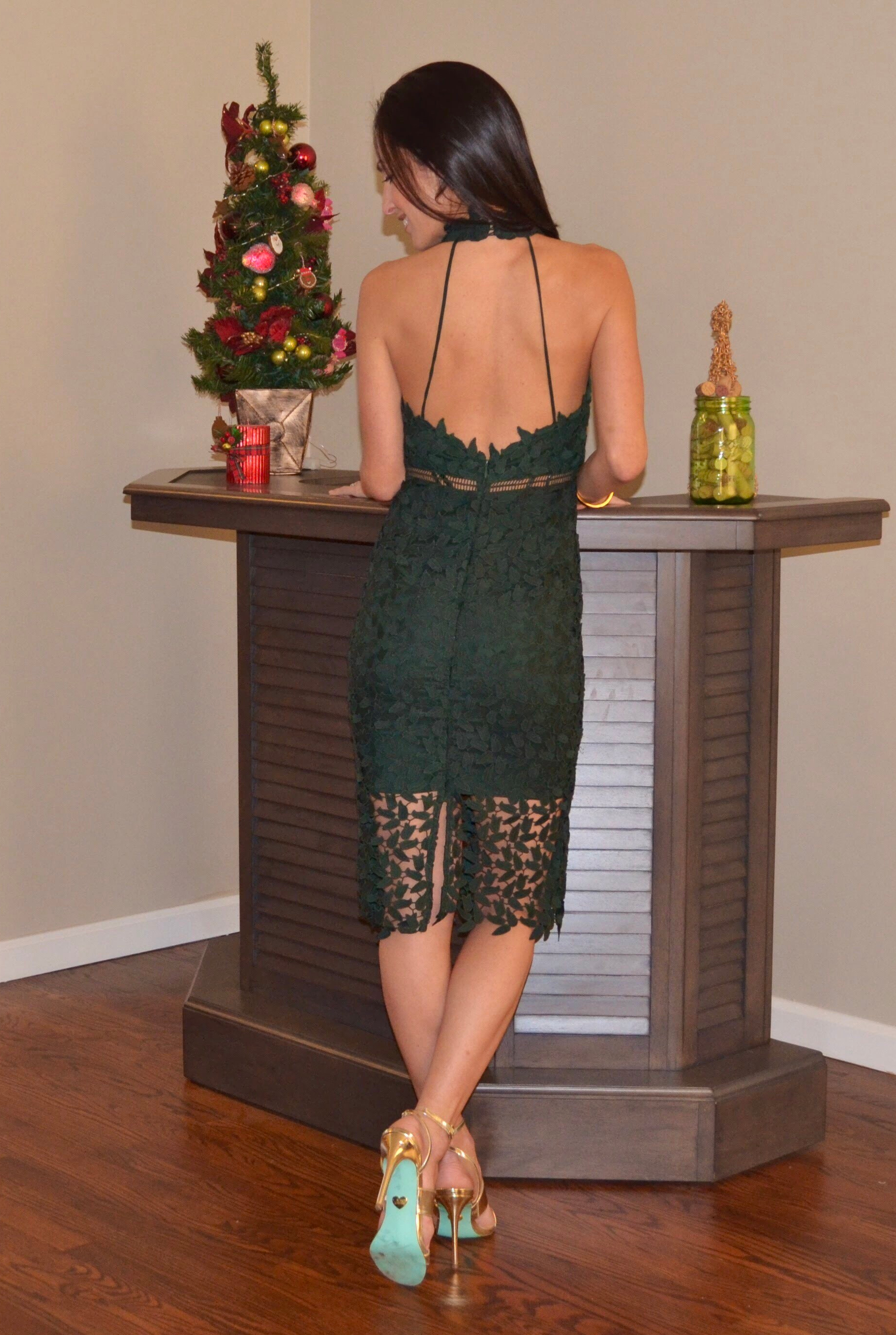 It’s all in the details… I love the high neck, longer length, and lace detail, but what I love even more is the back! Isn’t the back of this dress just stunning? Who doesn’t love a good party in the back?